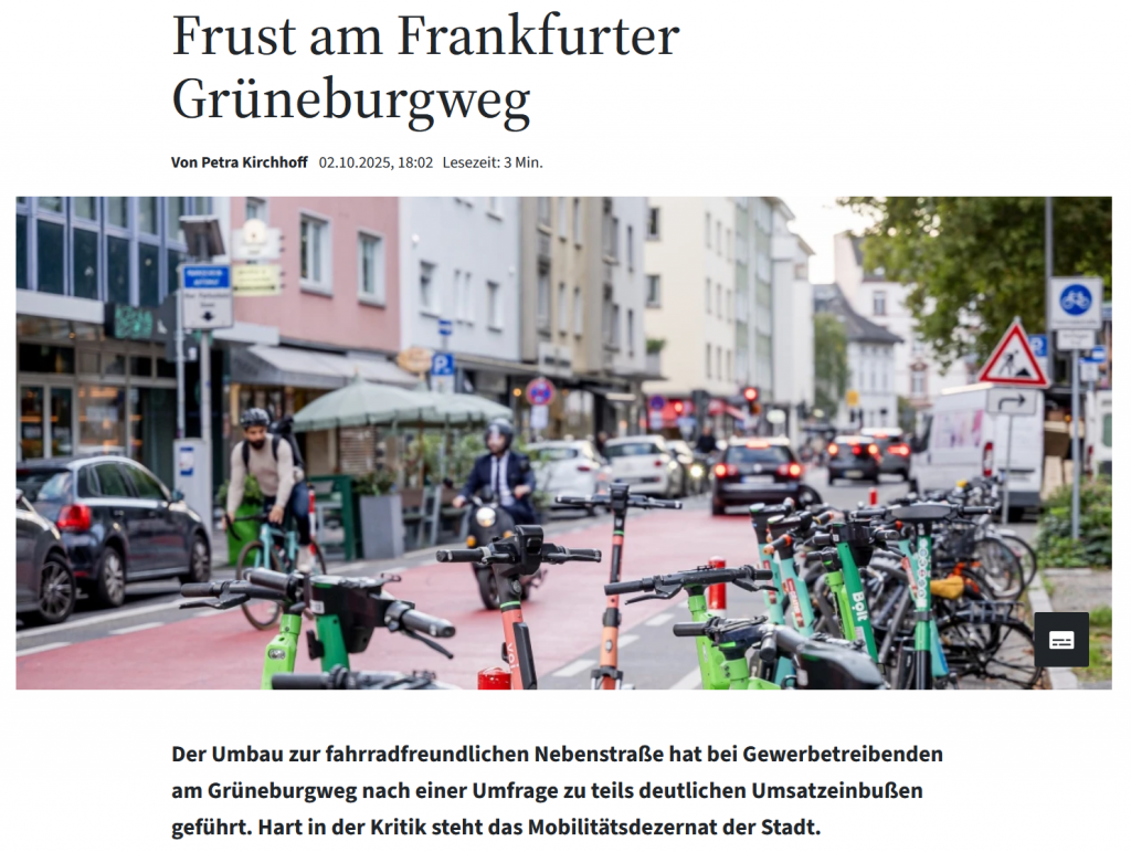 Der verkehrspolitische Sprecher der CDU-Fraktion, Frank Nagel, fordert vom Magistrat ein Umdenken bei der Umgestaltung des Grüneburgwegs. „Wir wollen sichere und attraktive Straßen für alle Verkehrsteilnehmer – aber was derzeit passiert, gefährdet Existenzen. Wenn durch Diagonalsperren, fehlende Kurzzeitparkplätze und unzureichende Lieferzonen Kunden wegbleiben und Betriebe aufgeben müssen, läuft etwas gewaltig schief.“